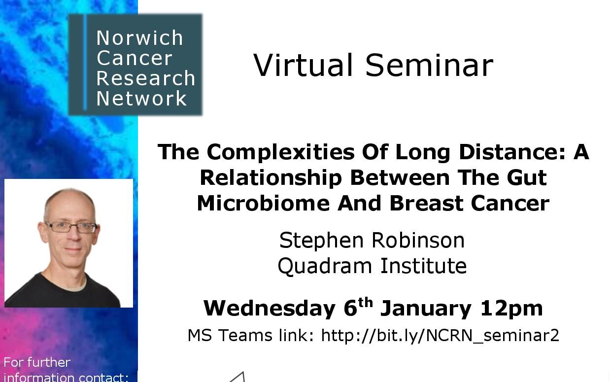 Join us Wednesday 6 January for a seminar titled, 'The Complexities Of Long Distance: A Relationship Between The Gut Microbiome And Breast Cancer'